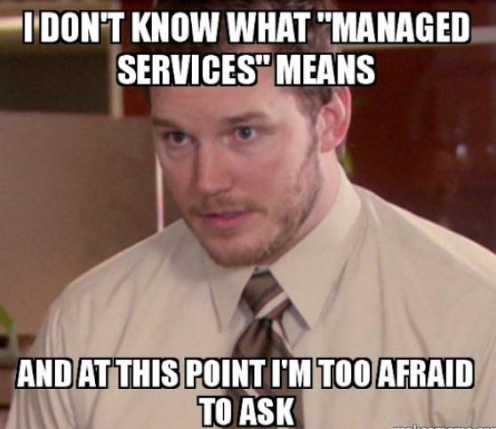 Finally, we come to our last meme for this blog. We’d be the first to admit that the term ‘managed services’ is fairly vague, and that not many people know the full extent (or any extent, really) of what we do. This is what makes it so comical to use Chris Pratt’s breakout character from NBC’s Parks and Recreation, the simple and kind Andy Dwyer, to express this. The somewhat naive character is often confused by what other people are referring to (the original quote expressed his ignorance of who Al Gore was) and so translates to our purposes quite nicely.