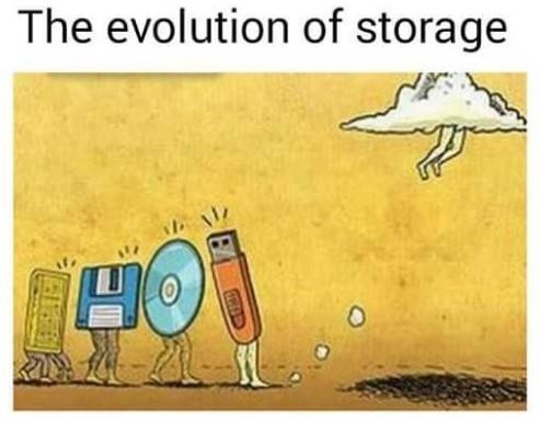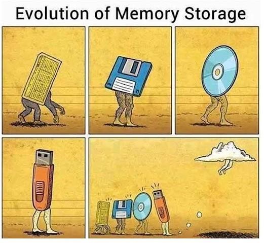 Memes don’t always have to be drawn from film and television. A cartoon, like the one pictured above, can also serve as a meme - and could even be split into five of them. For instance, if we wanted to show the progression of data storage technology, we could produce something like this...